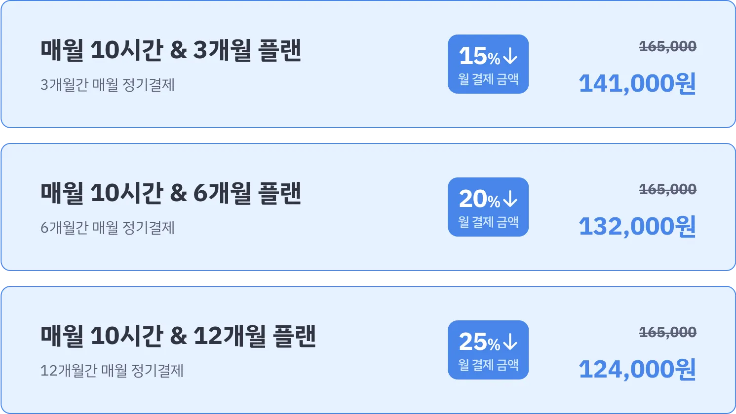 매번 결제할 필요 없이 정기 결제를 해보세요! 금액 할인은 덤
