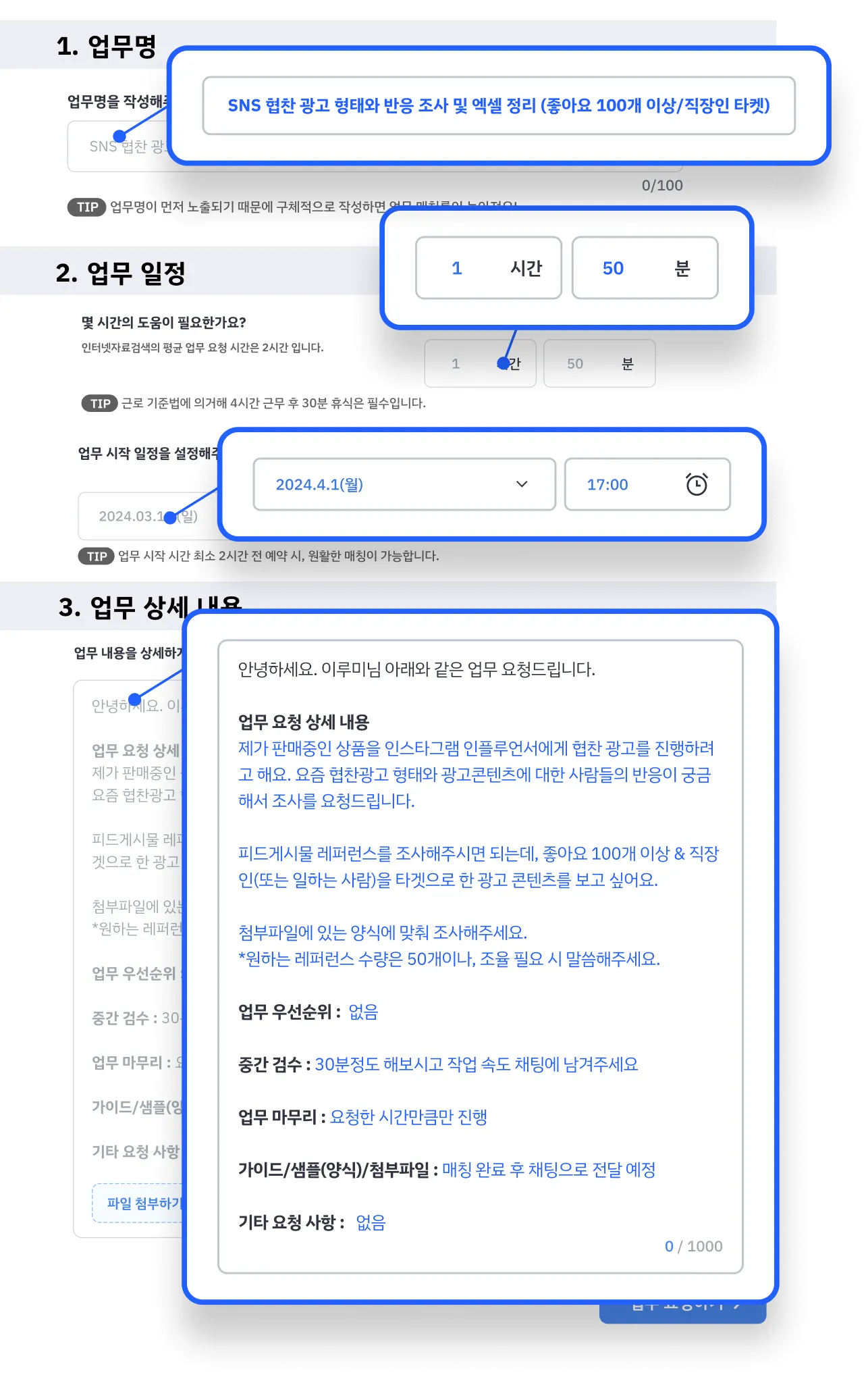 업무의 특성과 양에 맞춰 예상 업무 요청 시간을 설정해주세요.