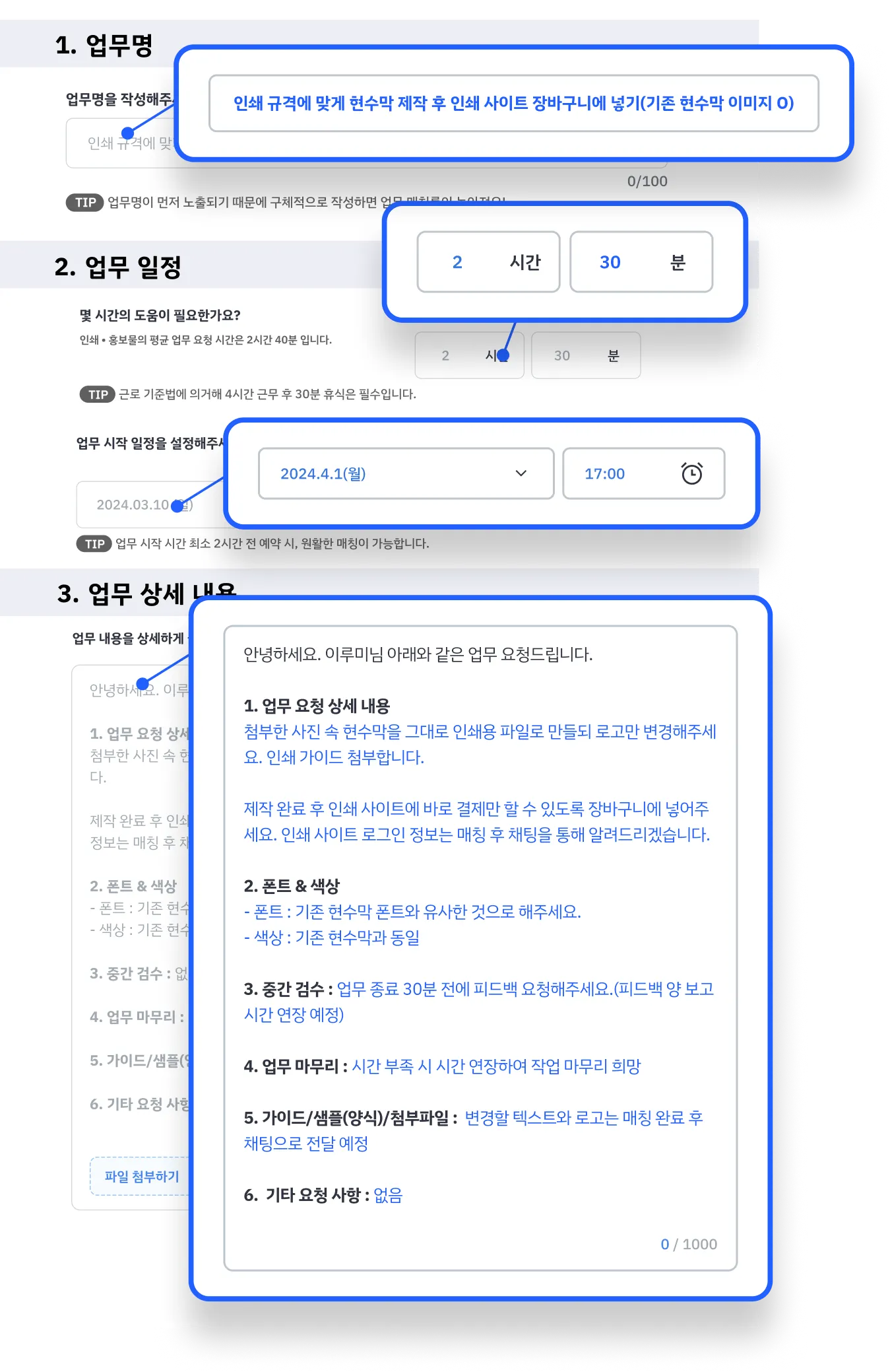 업무의 특성과 양에 맞춰 예상 업무 요청 시간을 설정해주세요.