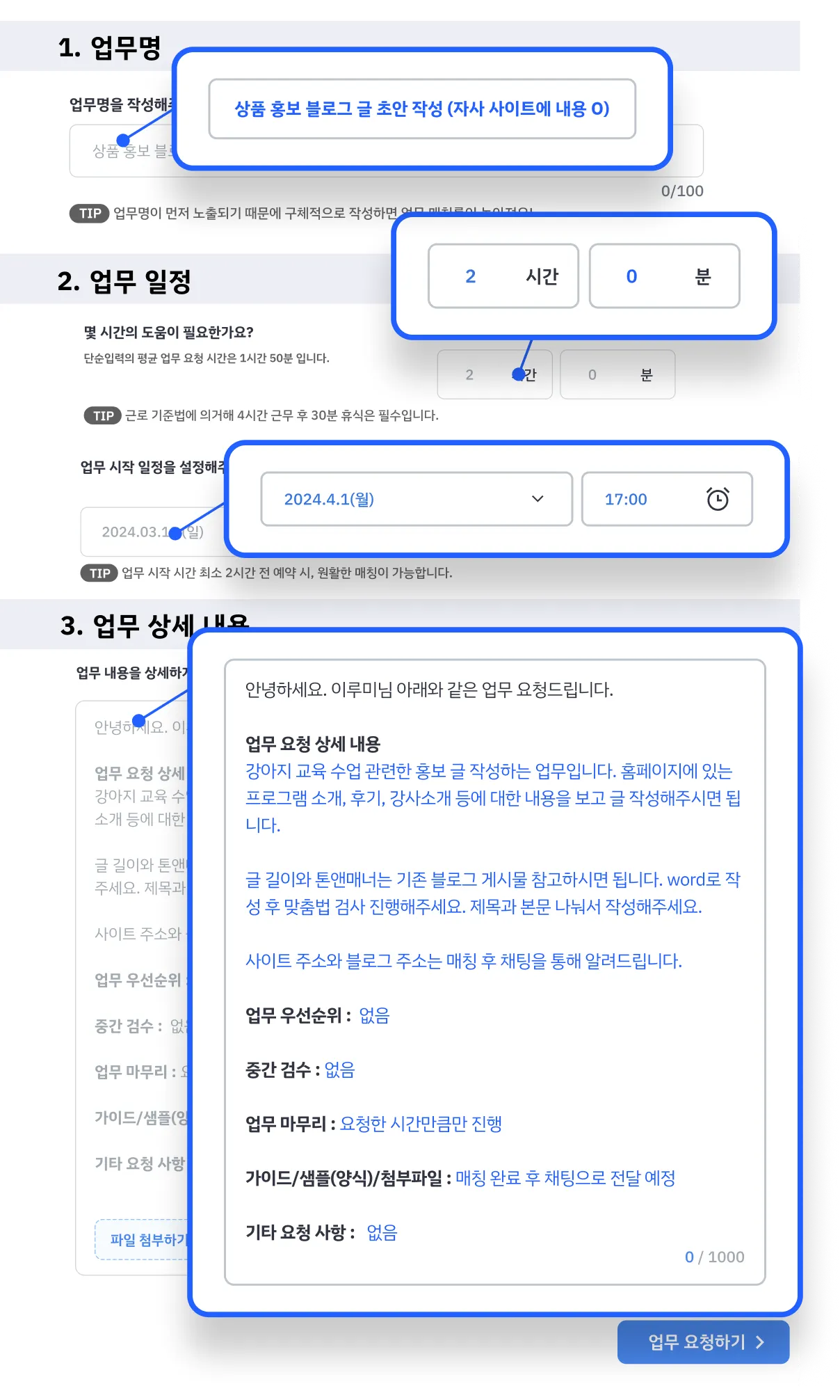 블로그 글 작성 업무 요청 대표 샘플