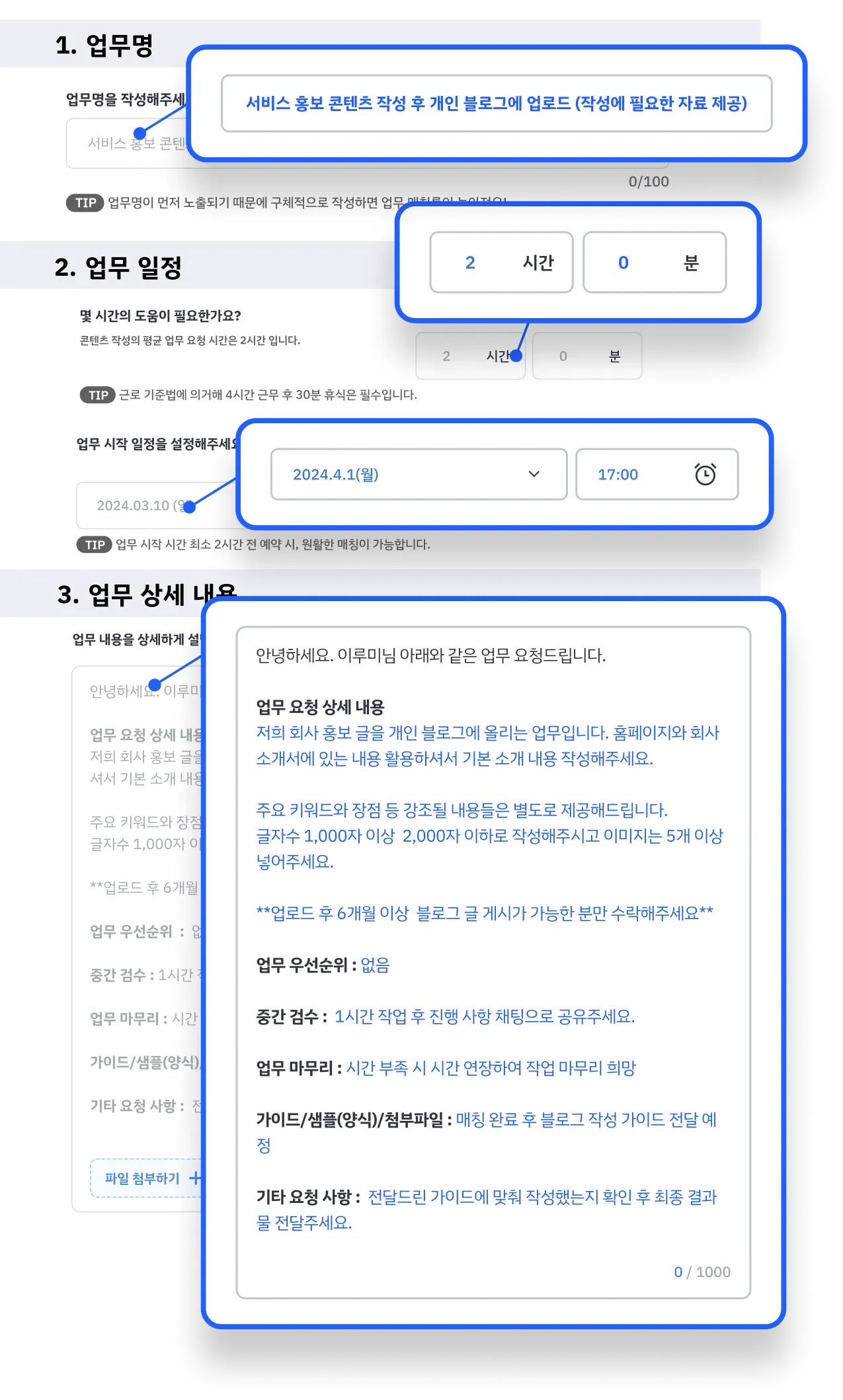 업무의 특성과 양에 맞춰 예상 업무 요청 시간을 설정해주세요.